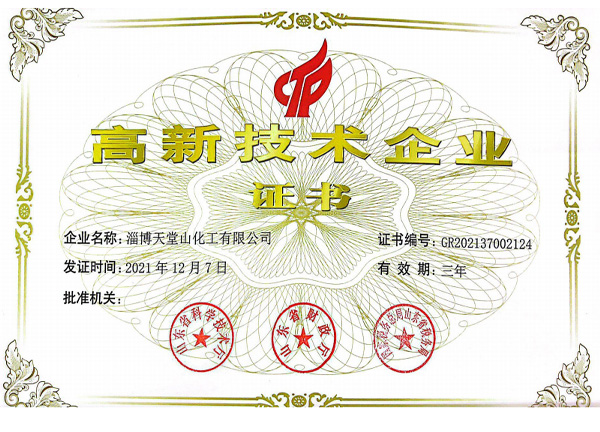公司產(chǎn)品符合國(guó)家的產(chǎn)業(yè)政策,各種手續(xù)齊全,通過了環(huán)保、衛(wèi)生、消防、安全生產(chǎn)許可等各項(xiàng)驗(yàn)收,企業(yè)化學(xué)品安全標(biāo)準(zhǔn)化三級(jí)達(dá)標(biāo)驗(yàn)收,并且通過了ISO9001質(zhì)量管理體系認(rèn)證、ISO14001環(huán)境管理體系、ISO45001職業(yè)健康管理體系,先后被有關(guān)部門授予“市級(jí)重合同守信用企業(yè)”“消費(fèi)者滿意單位”“質(zhì)量、計(jì)量管理先進(jìn)單位”“勞動(dòng)關(guān)系和諧企業(yè)”“企業(yè)免檢單位”“淄博市專精特新中小企業(yè)”“山東省化工明星單位”“山東化工發(fā)展?jié)摿?0強(qiáng)”“淄博市智能車間”“山東省創(chuàng)新型中小企業(yè)”“科技型中小企業(yè)”“高新技術(shù)企業(yè)”“山東省專精特新”等稱號(hào)。